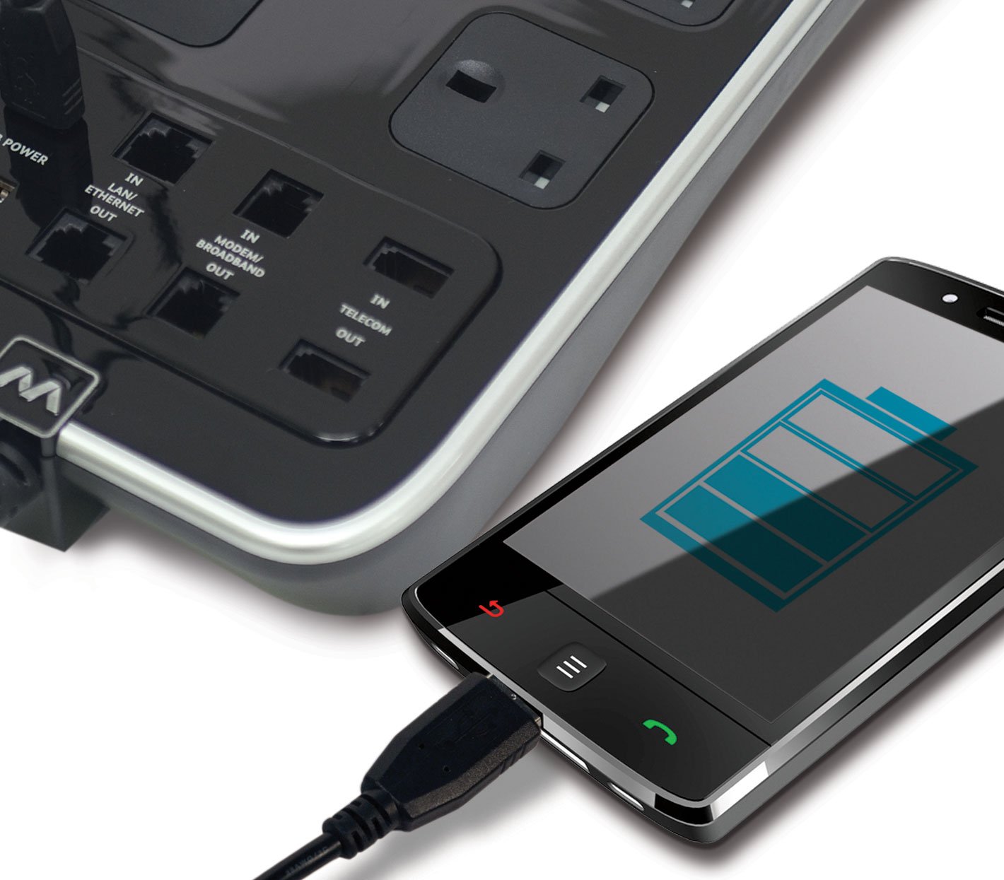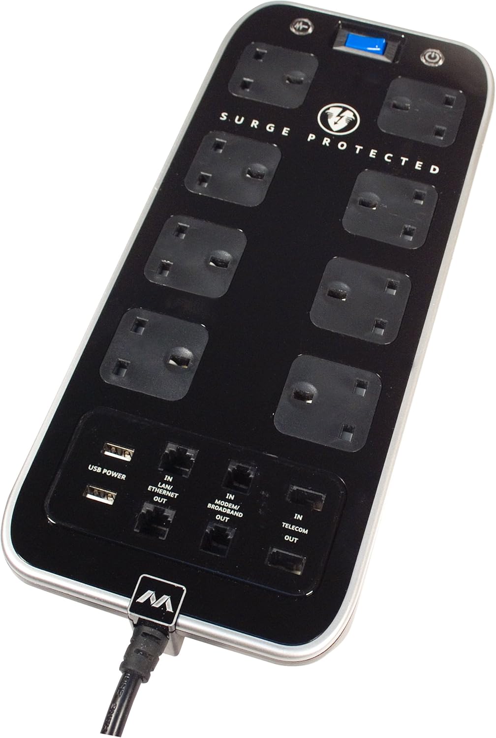 You can also wire your broadband, ISDN or modem connections through the Masterplug 8-Gang Surge Protected Extension Tower with USB & Telecom ports, to help protect your gear from damaging surges or spikes via alternative routes. This Masterplug 8-Gang Surge Protected Extension Lead with USB & Telecom Ports is so good, it comes supplied with a £10,000 warranty against damaged equipment.